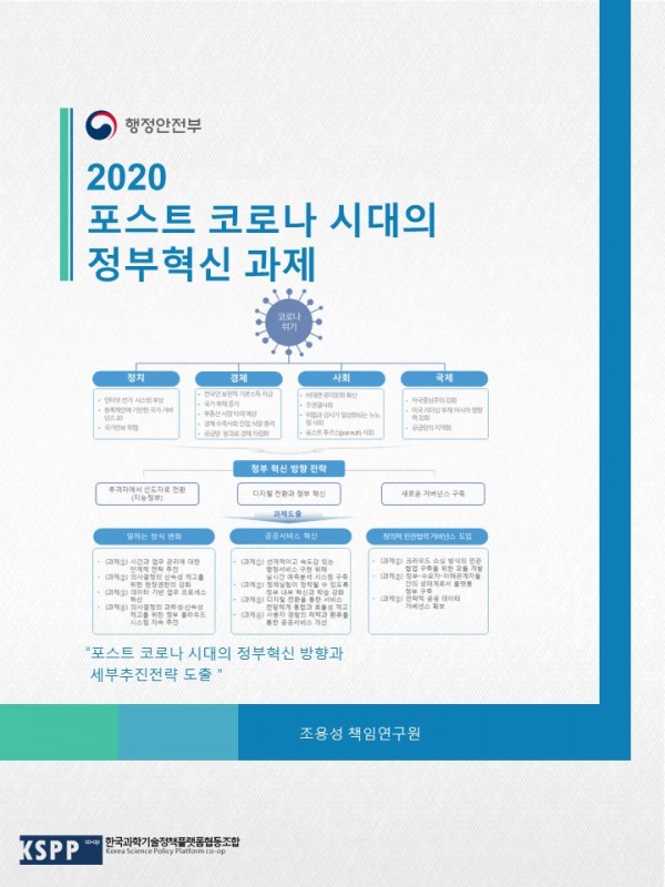 2020 포스트(post) 코로나 시대의 정부혁신 과제 연구 관련링크 페이지 정보 작성일20-08-10 15:57 조회5,889회 본문 포스트 코로나 시대의 행정환경 및 정부역할 변화 전망과 관련 변화를 선도하기 위한 중앙정부의 혁신전략 및 과제 도출 이전글 다음글 목록